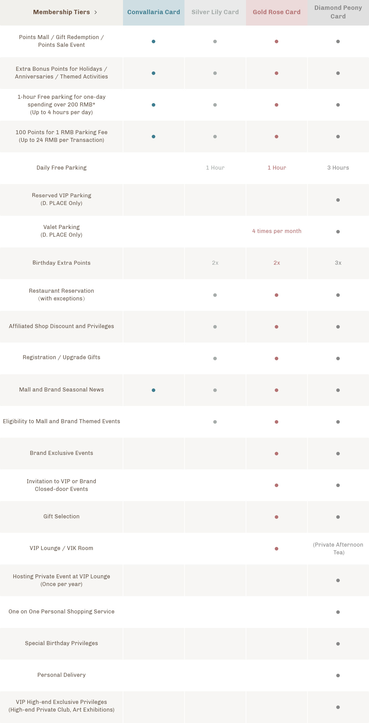 The Garland Club members can use their bonus points to exchange for gifts and lifestyle services. You may accumulate your shopping and bonus points to be upgraded to higher membership tiers and enjoy more and better privileges.